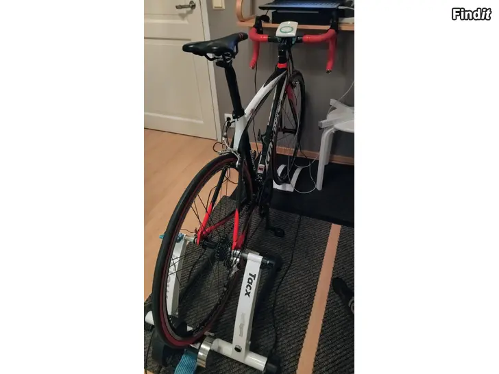 Färdigprutat paketpris för cykel + trainer + dator är 1000 e. Köparen får naturligtvis en liten utbildning i samband med hämtningen. Vid behov kan cykelskor köpas till för 50 e, Pearl Izumi storlek 43.