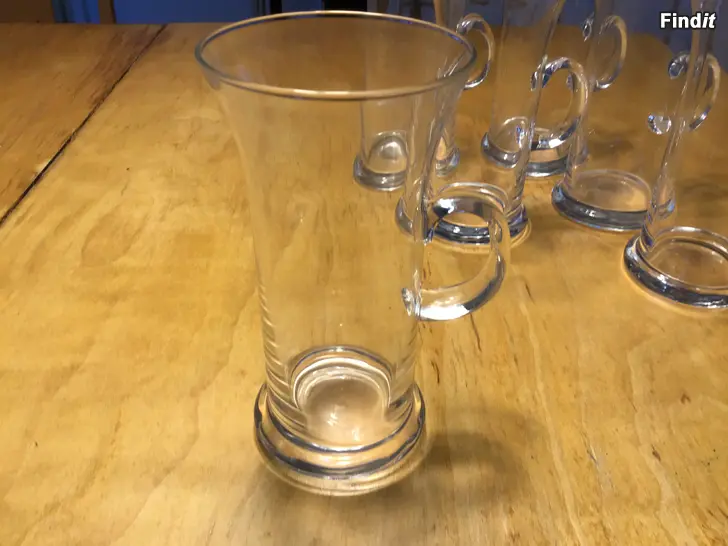 6 glas, design Heikki Orvola för Notsjö, 70-talet. Ursprungligen för ”irish coffee”, eller andra heta drycker, te, glögg.. Felfria. Pris för alla 6.
