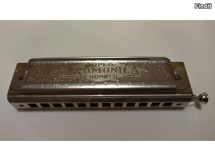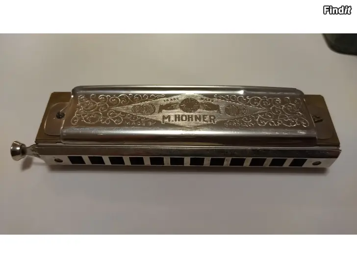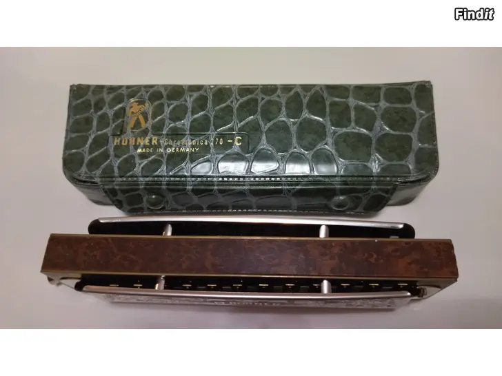 M Hohner Super Chromonica 270 -C-, tillsammans med det klassiska gröna originalfodralet. Mycket fint skick.