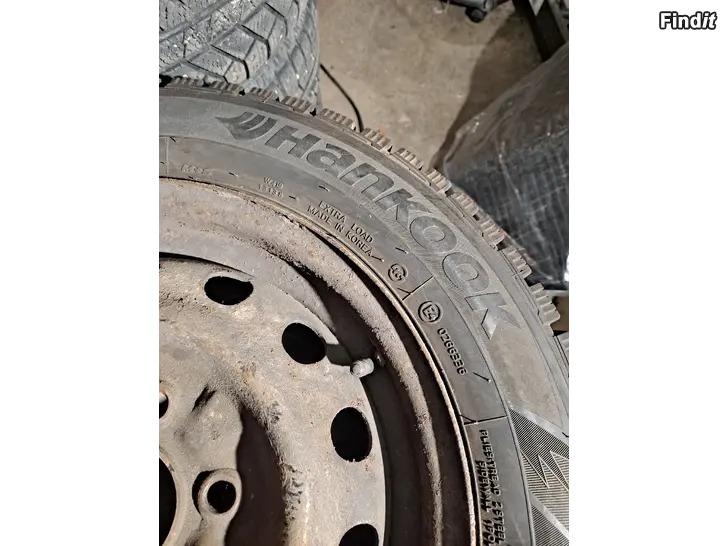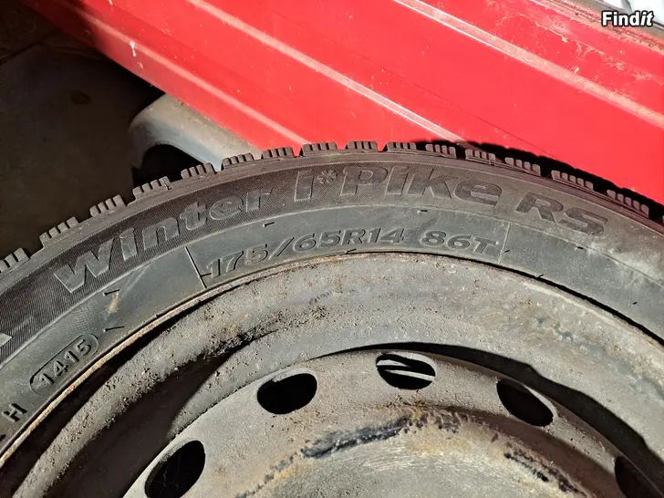 En serie 175/65R14 vinterdäck på plåtfälg. Bultmönster 4x114,3. Varit under en mazda om jag minns rätt. Legat flera år i förrådet. Vinterdäcken lite körda Hankook i gott skick, men de är 10år gamla.