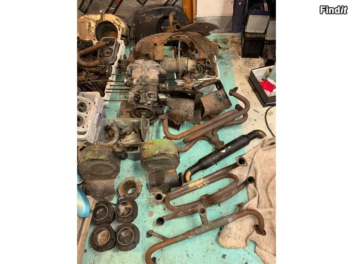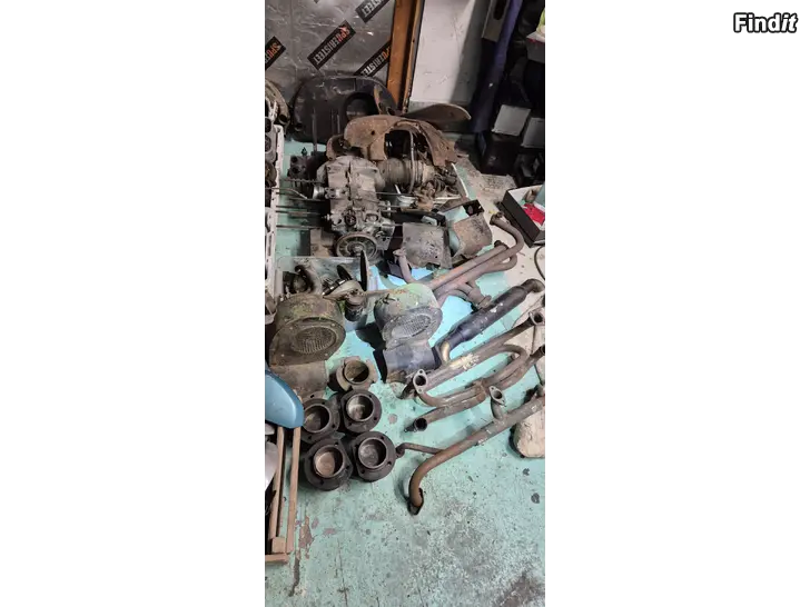 Cylindrar, kolvar , ett tiotal tvåports toppar ,vevaxlar, motorblock, ormbo, förgasare Solex 36 , m.m.