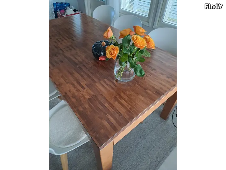 Säljer ett stabilt äkta trä köksbord utan stolar. Mått 175 x 94 samt höd 74. Säljes på grund av flytt. Tar emot bud.