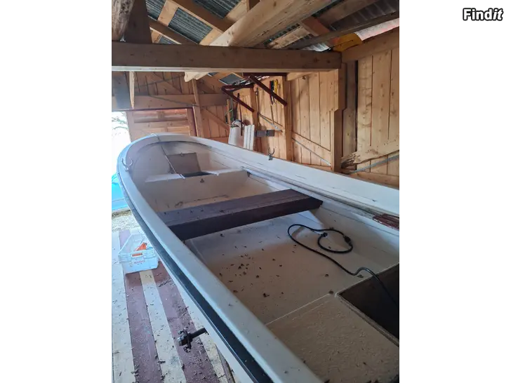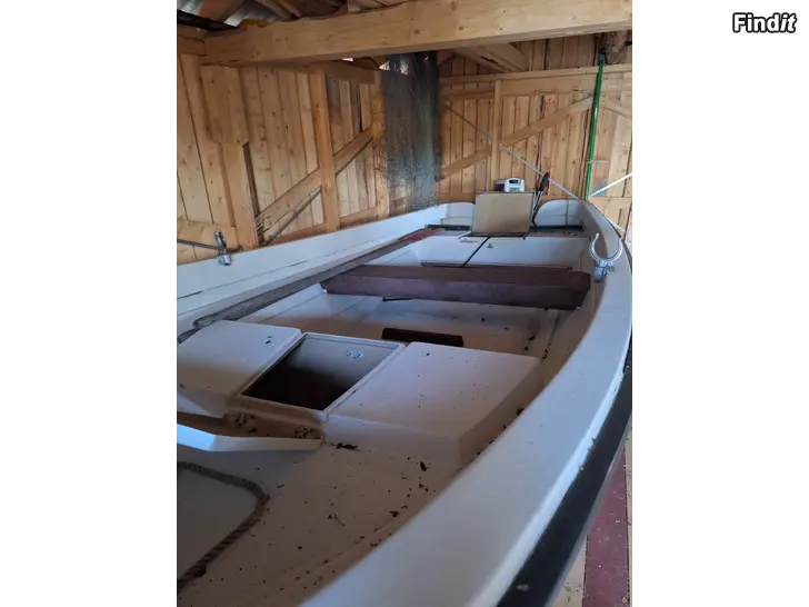 Gammal sjöduglig fiske/villabåt till salu. Mellanbotten är tömd och båten är självlänsande. Målfärgen har lossnat och flagar på några ställen. Johnson 20 hp startar bra och fungerar som den ska.