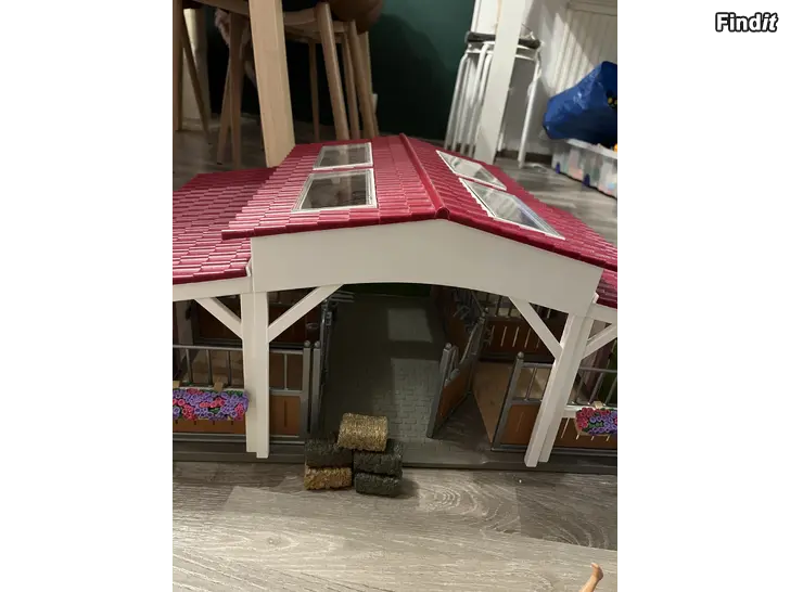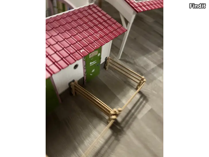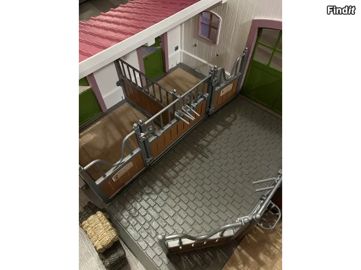 Schleich stall som blivit lekt med några gånger. Alla småsaker som vi hittar kommer med. Inga hästar. Kan köpas skilt.