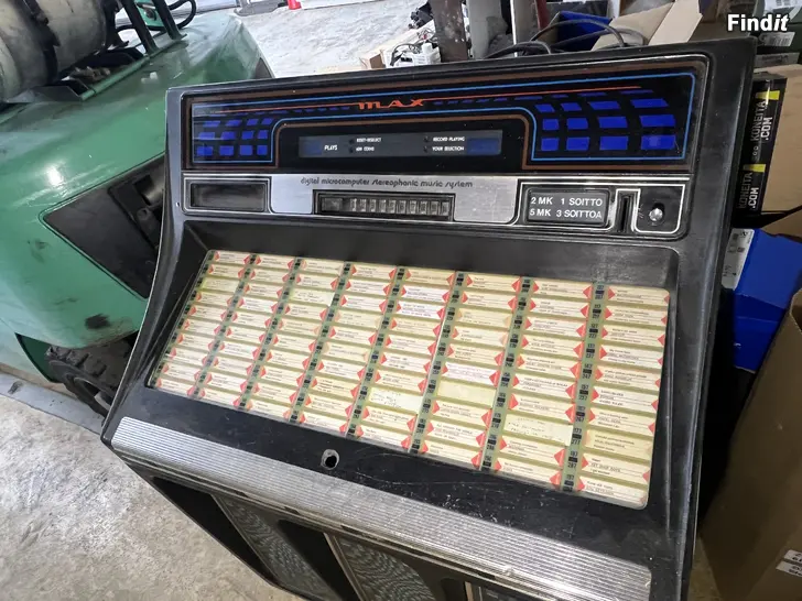 Säljes en obehövlig jukebox. Har ej själv haft igång den, men köptes som fungerande förutom att myntkasetten är borttagen. Fås med en myntkasett som är beställd från USA.