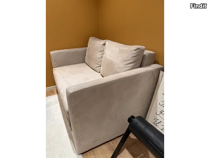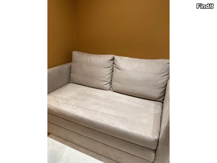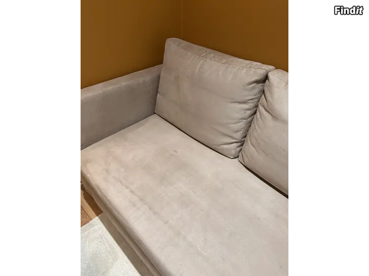 Hyväkuntoinen vuodesohva mokkapintaisella kankaalla. Muutama pieni tahra näytti olevan, ei ole koitettu pestä. Sisällä säilytyslaatikko vuodevaatteille tai petauspatjalle. Ostaja saa halutessaan petauspatjan kaupan päälle.