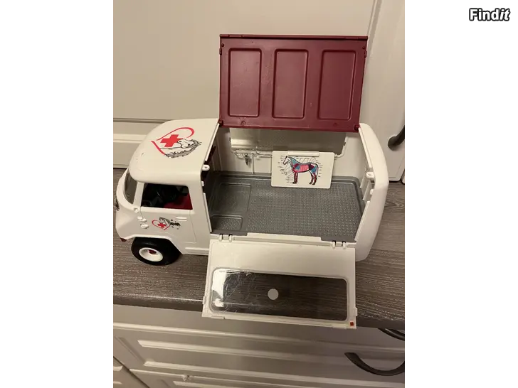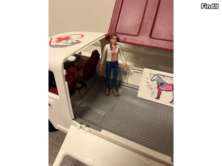 Schleich veterinärbil. Veterinären finns och lite andra småsaker. Inte komplett. Inga hästar kommer med men finns att köpas skilt.