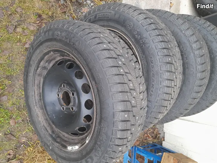 Körd en säsong mönsterdjup 8mm. Plåtfälgar 5x108 med 65,1mm centrumhål et 43.suttit på en äldre s60