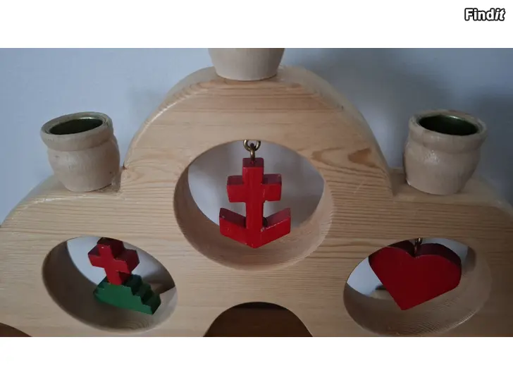 Femarmad ljusstake i trä med tro, hopp och kärlek