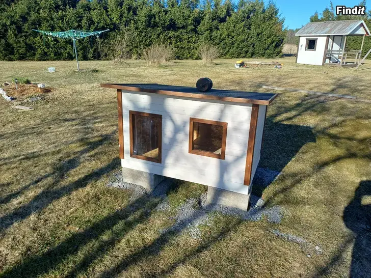 Isolerad hundkoja AB Polar. Köpt ny i Oktober 2024 från taloon.com. Helt oanvänd, vår hund vägrar använda den. Endast ihopmonterad och oljad. Den är även förstärkt med en bottenram av 2x4 virke. Nypris 474,90 euro + frakt 69 euro.