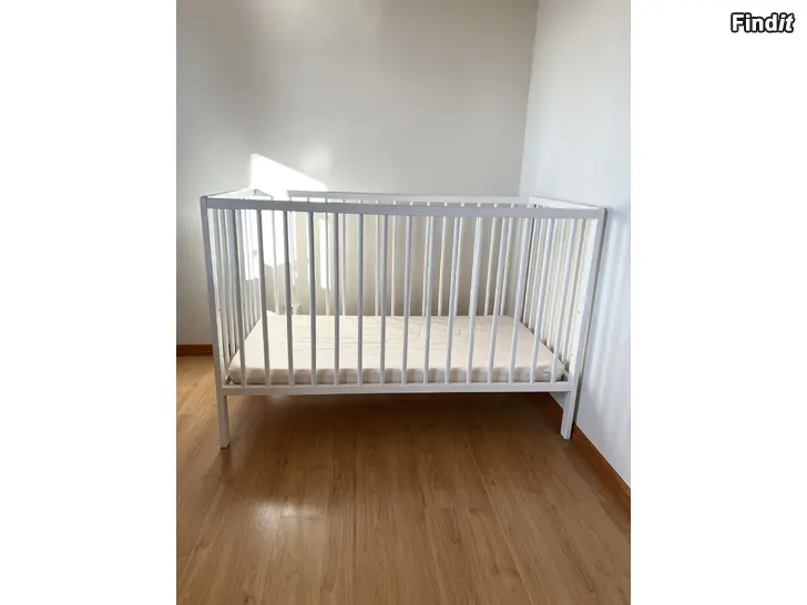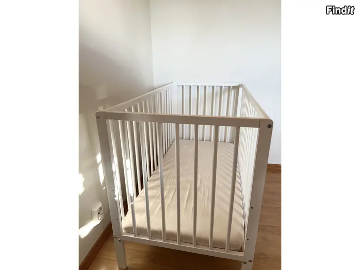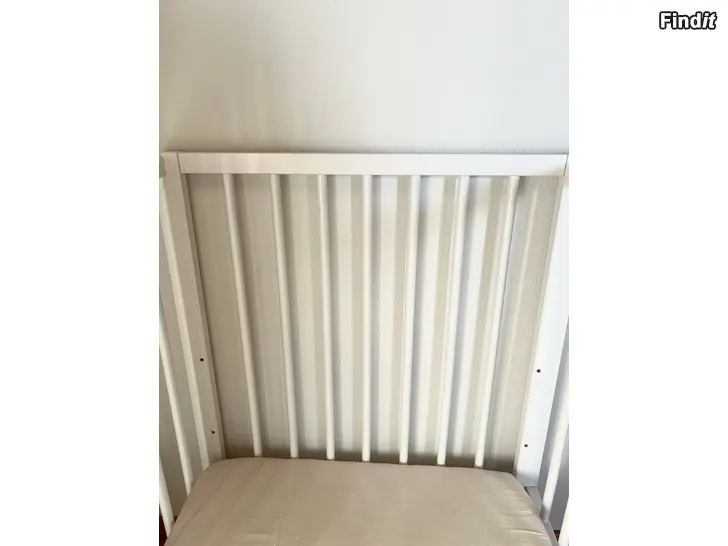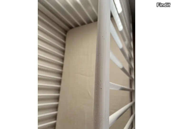 Säljes en spjällsäng med botten som går att justera i två lägen. Madrass som använts med madrasskydd fås med. Små märken på kanten av sängens långsida, se bild. Sängen är i övrigt i gott skick.