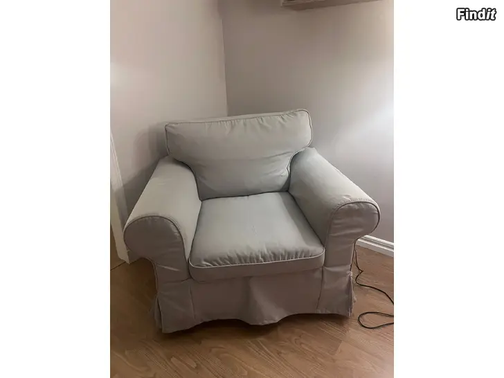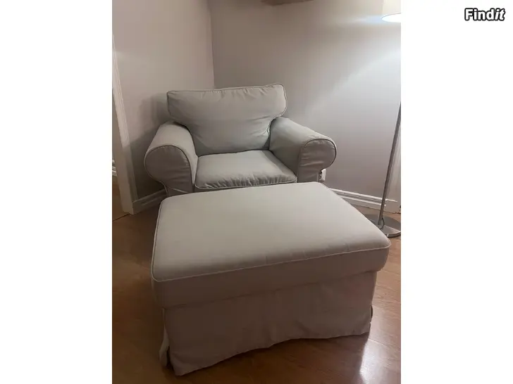 Ikea fåtölj ektorp samt tillhörande fotpall med förvaringsutrymme säljes. Pris: 120€