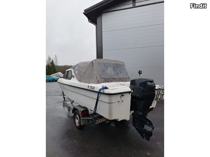 Säljes en fin Finnsport 560HT från 1984 utan motor. Tillverkarens rekommenderade motoreffekt är 40-50hk men båten kan registreras med motor upp till 120 hk enligt Traficom. Så ett brett utbud med motorer passar denna båt. Båten är renoverad för nått år sedan med nya trädetaljer på insidan samt målad in- och utvändigt. Kapellet blev också då bytt och är i bra skick. Båten har senast varit registread med en Etec 90 som syns på bilderna. Denna motor ingår ej men vid intresse kan Yamaha reglage,vajjrar och mätare medfölja i affären. Trailerin på bild Besiktad JSI 1000 ingår inte i äffaren men kan förhandlas med.