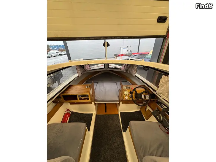 Båten är utrustad med: - Belysning inne - Lanternor - 2x Pilspumpar med nivåvakt - Fast rostfri bränsletank med låsbar kork och mätare 60-70liter - Vindrutetorkare - Radio - 12v uttag - Bord - Brandsläckare - Badstege - Styrning och styrvajer - Kompass - Dynor i bra skick