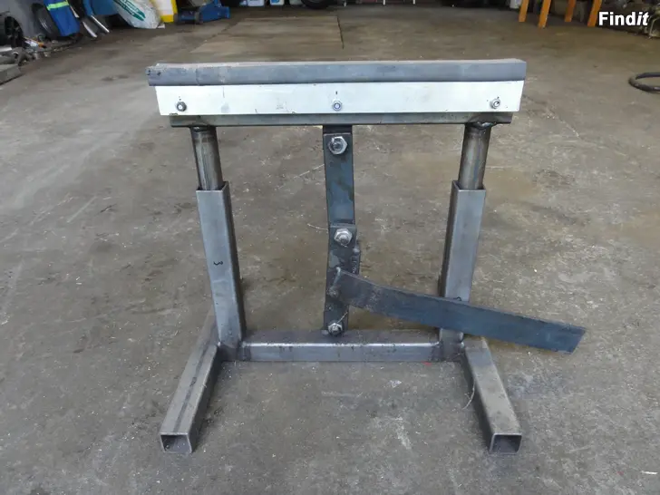 Enkel manuell variant, bara att trampa ner spaken så hålls hojjen uppe själv. Höjd i nedsänkt läge: 297 mm. Höjd i upplyft läge: 355 mm. Stadigt byggd med gummilist överst. Själv använt den på en Honda XR 400. Gärna kontant betalning.
