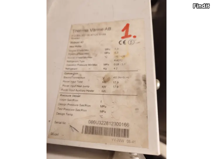 Begnad 42kw Thermia bergsvärmepump med 79500h drifttid