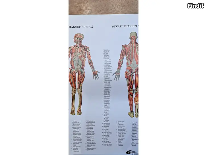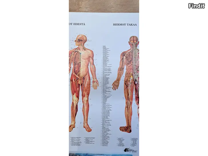4 st, Muskler, djupa muskler, skelett och nervsystemets posters av Rainer Rajala. 58cm×46cm