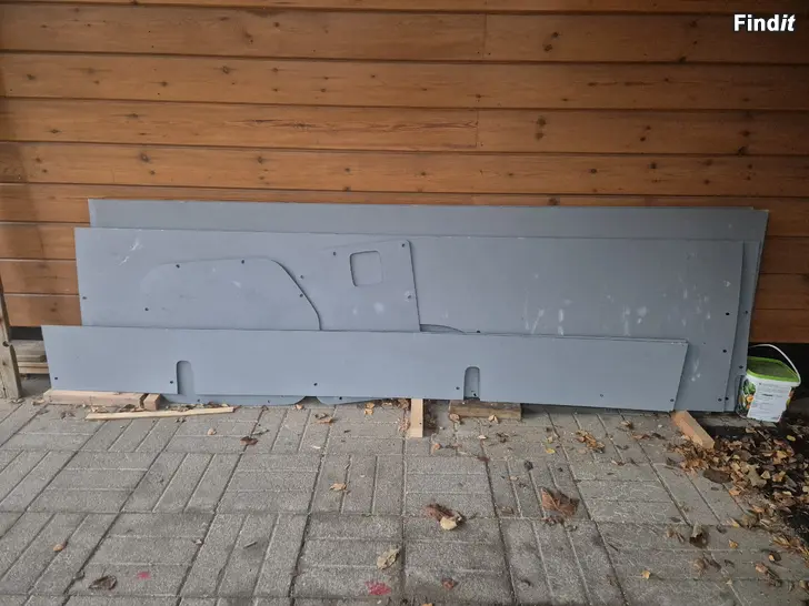 Säljer några inrednings delar från en 2021 w907 sprinter - Frambänk för 2 personer med botten och original matta, som ny 300e - baksäte för 3 personer med isofix som ny 600e - komplet Panel sats med fäst plattor 80e - innertak 30e