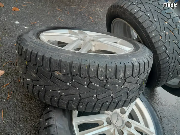 Däcken är Pirellis dubbdäck. Dock ej värst bra längre. 205/55