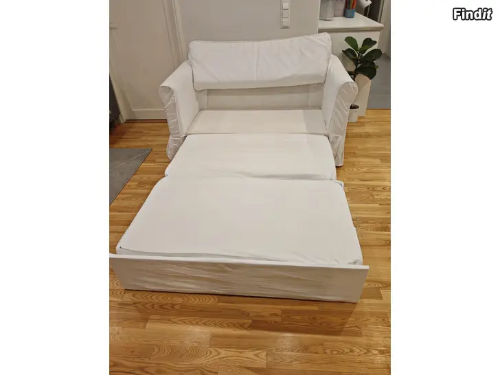Vit liten bäddsoffa säljes. All klädsel går att tvätta i 60 grader. Soffan är nu nytvättad och vit men kan inte garantera att den är helt fläckfri när den ska hämtas, ju snabbare någon hämtar desto större chans att den hållit sig vit 😅