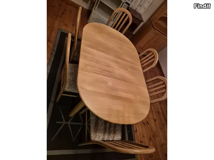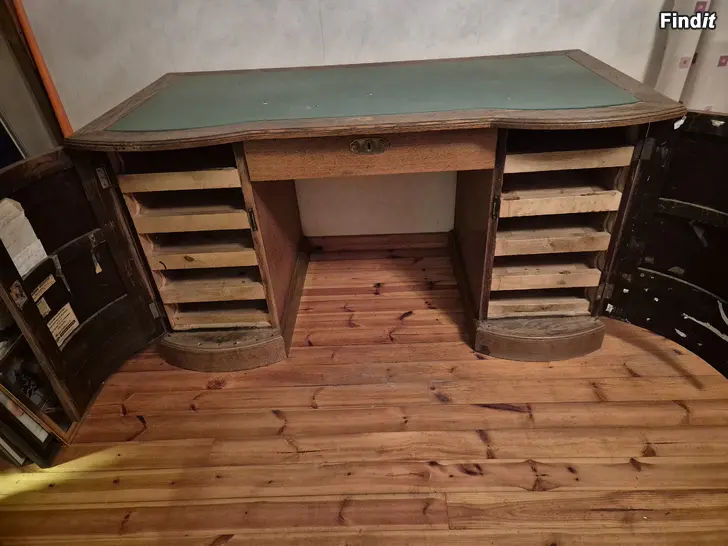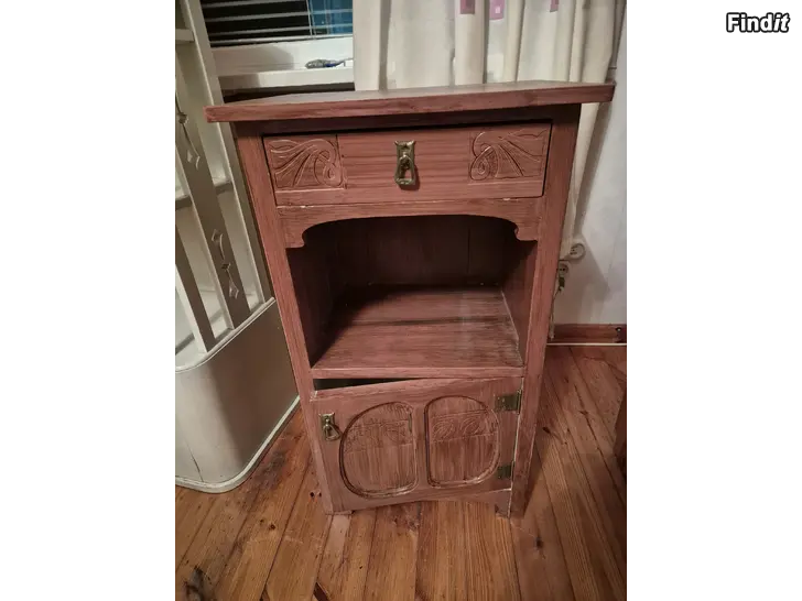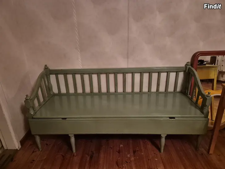 Äldre skrivbord 50€ Matbord med 6st stolar där tyget börjar bli slitet lxbxh 1.50 x 1.0 x 0.74m med extra inläggsskiva på 45cm. 50€ Äldre grön utdragssoffa/kökssoffa 50€ Nattduksbord/pottskåp brunt hxbxd 76 x 45 x 35cm 20€ Liten äldre vit bokhylla hxbxd 105 x 59 x 28cm 20€