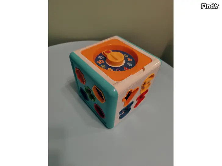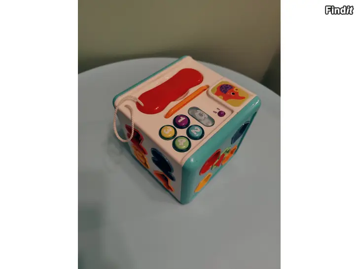 Bild 3 och 4: Mångsidig låda med klossar, klocka och telefon. Låter och blinkar. I bra använt skick. 5€