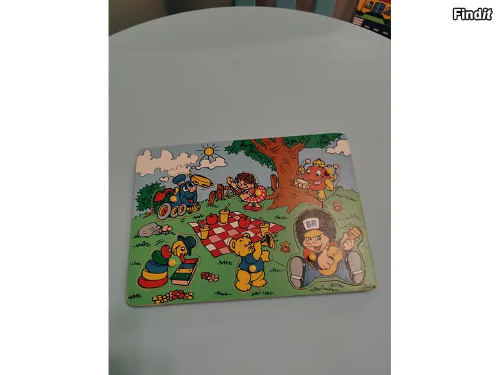 Bild 5: Trä pussel, spelar olika instrument när man lägger ner pusselbiten. I bra skick. 2€