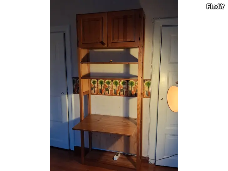 Lundia. Hyllan med lådor 160,-. Hyllan med bordsskiva 100,-. Bredd 84 cm. Djup 30 cm. Höjd 210.