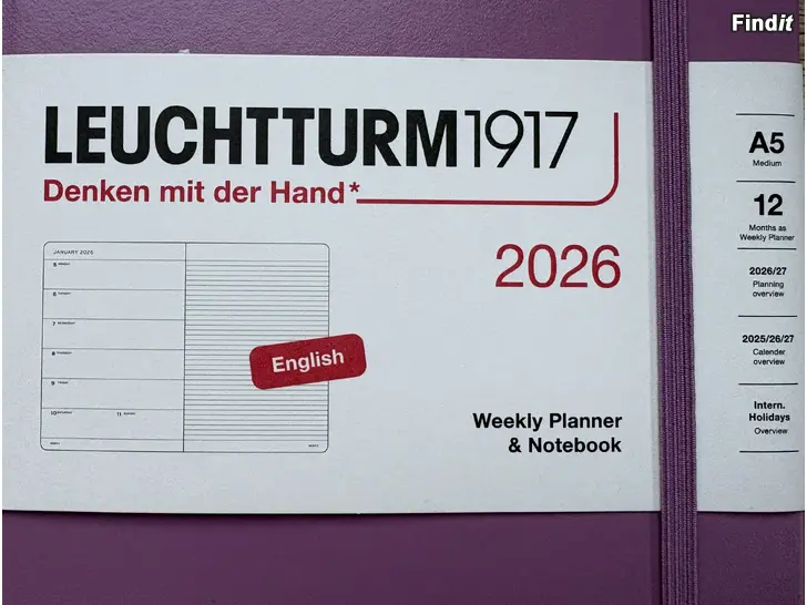Säljes splitterny Leuchtturm kalender 2026 i A5 format. Kalendern har färgen Dusty Rose och säljes pga felköp. Köpt för 30€.