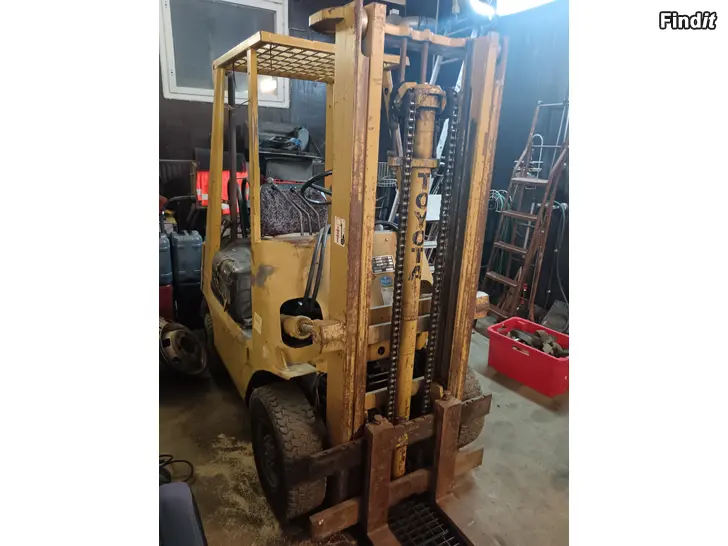 Gas, bensin,, men ja ha bara kört på bensin hela tiden som ja använt den 1500kg lyftkapasitet, lyft höjd ca 3,5 om ja minns rätt, finns åxå tiiäggshyraulik färdigt,, pris 3200€. Ring mig på tel 0400767223
