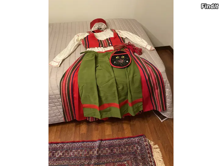 Relativ ny komplett Vörå folkdräkt. Tyget är vävt i Vörå och den är även sydd där men kommer inte ihåg av vem.