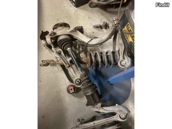 Framhjulsupphängning vänsterr o höger komplett med länkarmar hjulnav drivaxlar stötdämpare mm, allt är i ok skick.