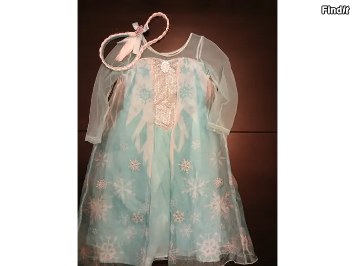 Säljes en Frozenklänning med tillhörande diademfläta. Klänningens storlek 122-128.