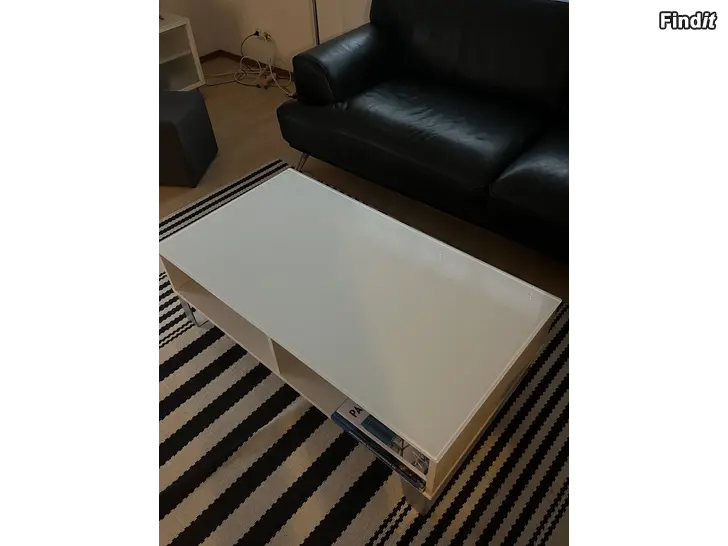 Stadigt vardagsrumsbord med hylla säljes. Gott skick. Vitt och med metallben. 60x110 cm. Höjd 36 cm.