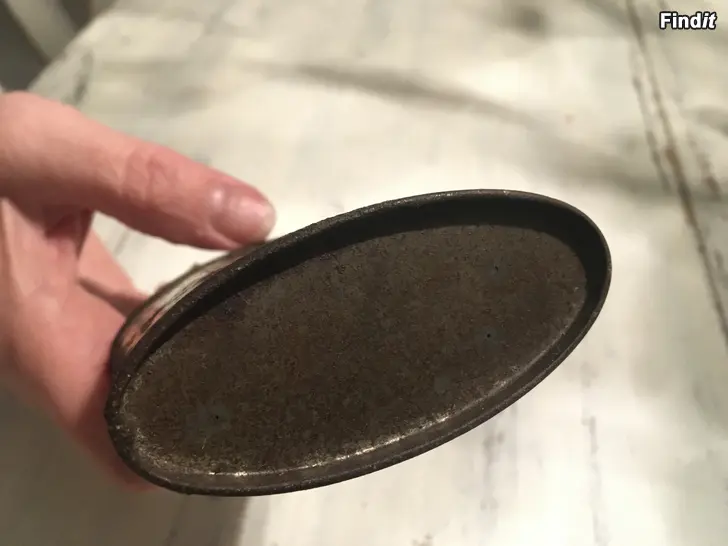 Liten oljeburk för cyklar från 1900 talets början, samlarobjekt , ytrost och lite bucklig, skick enligt bilder. Hämtas från vår mjölkbrygga i Kronoby, Hofsala