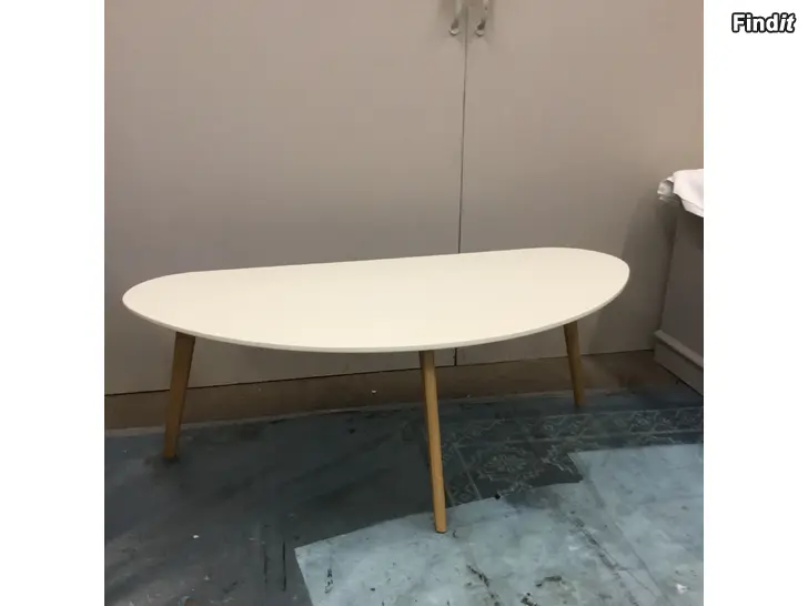 Soffbord naturfärgad ek och vit, längd 120 cm, bredd 60 cm och höjd 45 cm. Nyskick inga synliga fel.