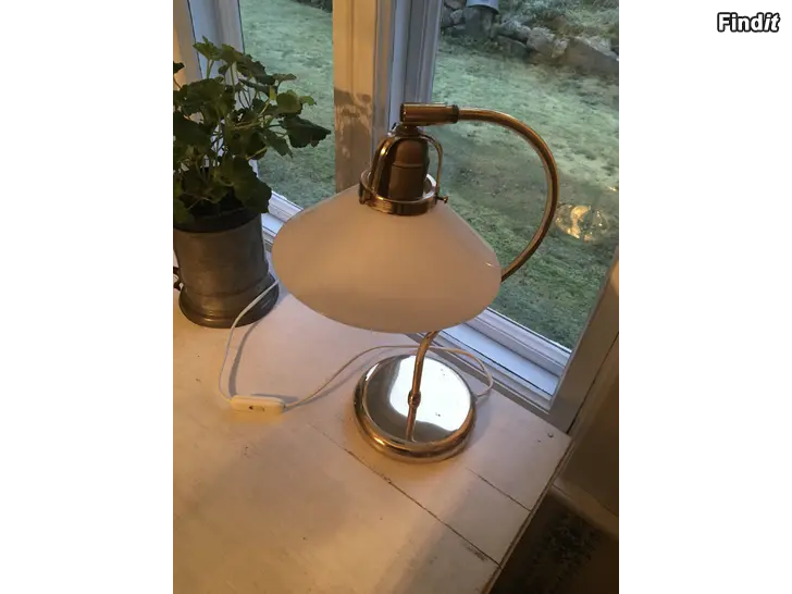 Bordslampa i mässing med vitt opalglas, höjd 38 cm, svensktillverkad, elen ok, hämtas från vår mjölkbrygga i Kronoby, Hofsala