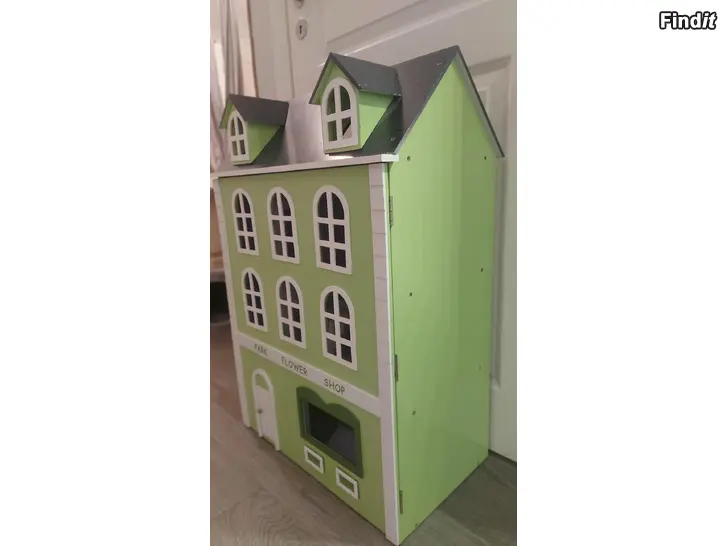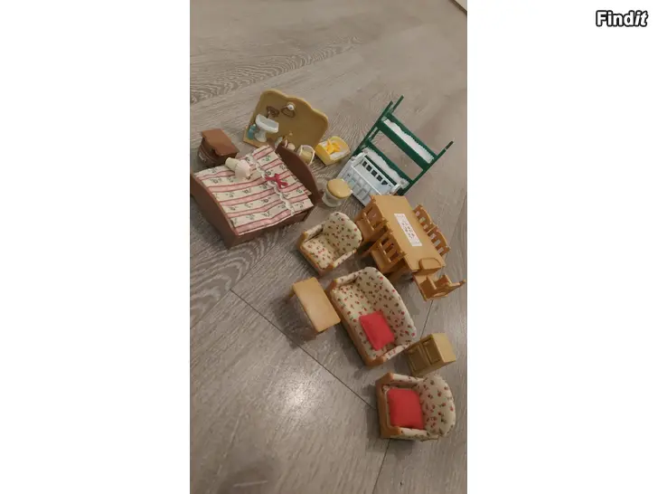 Några dockskåps möbler följer med. De flesta är av märket Sylvanian families.