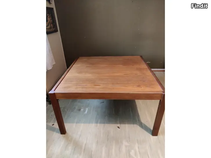 Säljes ett retro soffbord modell större, stadigt. Mått 100*100 cm, höjd 53 cm.