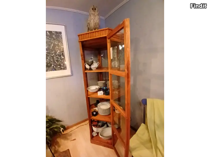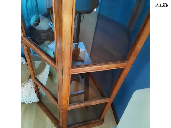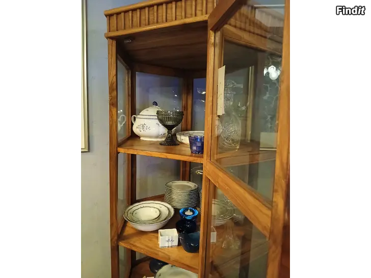 Säljes ett vitrinskåp i teak. 6-kantigt med mycket stabila hyllor, för t.ex en servis. Också använt som bokskåp. Stiligt! Inget slitage. Höjd: 179cm. Fråga gärna om ni önskar mera bilder.