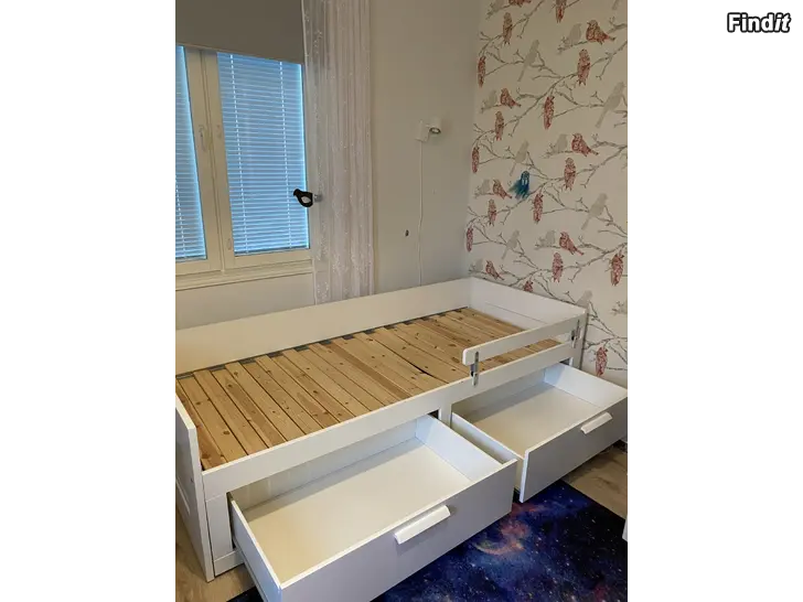 Säljes Ikea Brimnes säng i befintligt skick. Madrass fås med i köpet om önskas. Mått 87 x 205cm.
