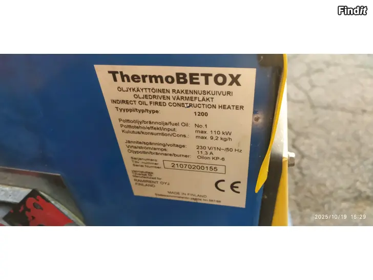 Fungerande värmare för uppvärmning av stora utrymmen. Belysningsström. Oilon KP6 oljebrännare. Thermostat mm. Moms ingår Finns även större och mindre värmare, billigare och dyrare Svarar endast på samtal 0500-660440