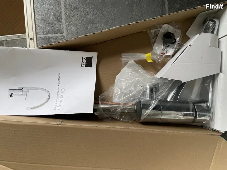Ny oanvänd Oras Vega kökskran med diskmaskinsanslutning, nypris 235 €.