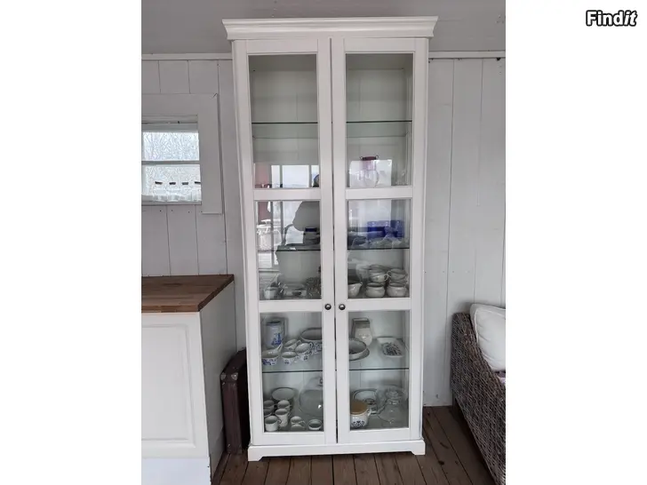 Säljes ikea liatorp vitrinskåp, små spår av användning syns. Generellt bra skick. Finns & hämas från kvevlax.