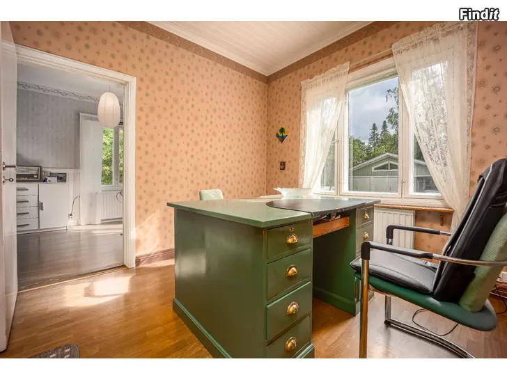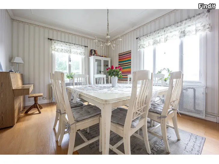 Detta hus är mer än bara väggar och tak – det är en livsstil. Ljusa rum med högt i tak, en öppen spis som sprider värme under vinterkvällar och generösa ytor som ger plats för både familjeliv och drömmar om eget företagande.