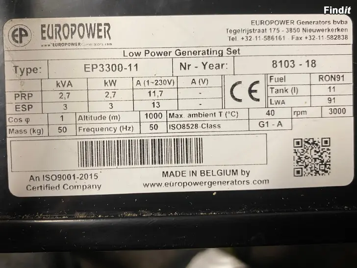 Europower Honda EP3300-11 generator/ elverk
