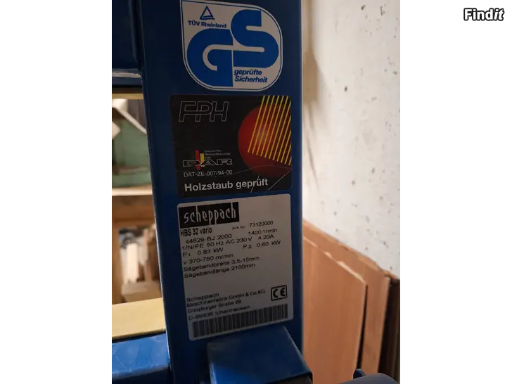 Scheppach hbs 32 vario bandsåg och scheppach ha 2600 spånsug till salu p.g.a utrymmesbrist.