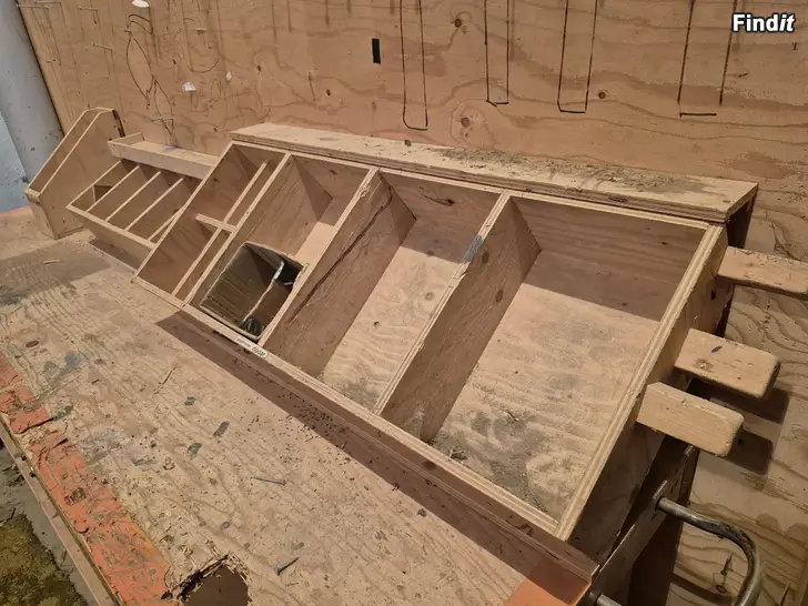 Stadigt arbetsbord i trä med stor arbetsyta och en bakre skiva där olika verktyg kan fästas. Arbetsbordet har flera förvaringsutrymmen som möjliggör organisering av verktyg och tillbehör. Bordets längd är 210 cm, men bakskivans längd är 240 cm – denna kan enkelt kortas av vid behov. Passar bra i garage, verkstad eller förråd. Bredd 210 cm +30cm, djup 62 cm, höjd 158 cm.