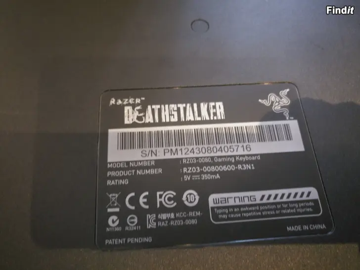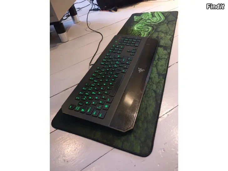 Razer DeathStalker tangentbord med grön bakgrundsbelysning + matta 90 x 30 cm i begagnat fungerande skick. Pris 20 euro kontant betalning. Finns i Jakobstad