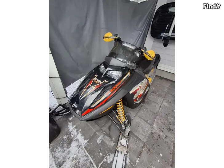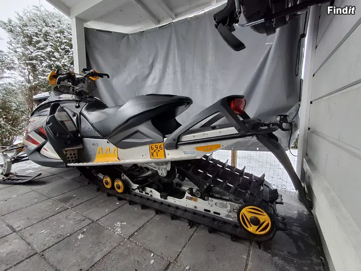 Bränsle snål och smidig skoter med dragkrok. Förlängd till 144 och matta med högre kammar 51mm för bättre framkommlighet. Går bra men med en del skavanker.